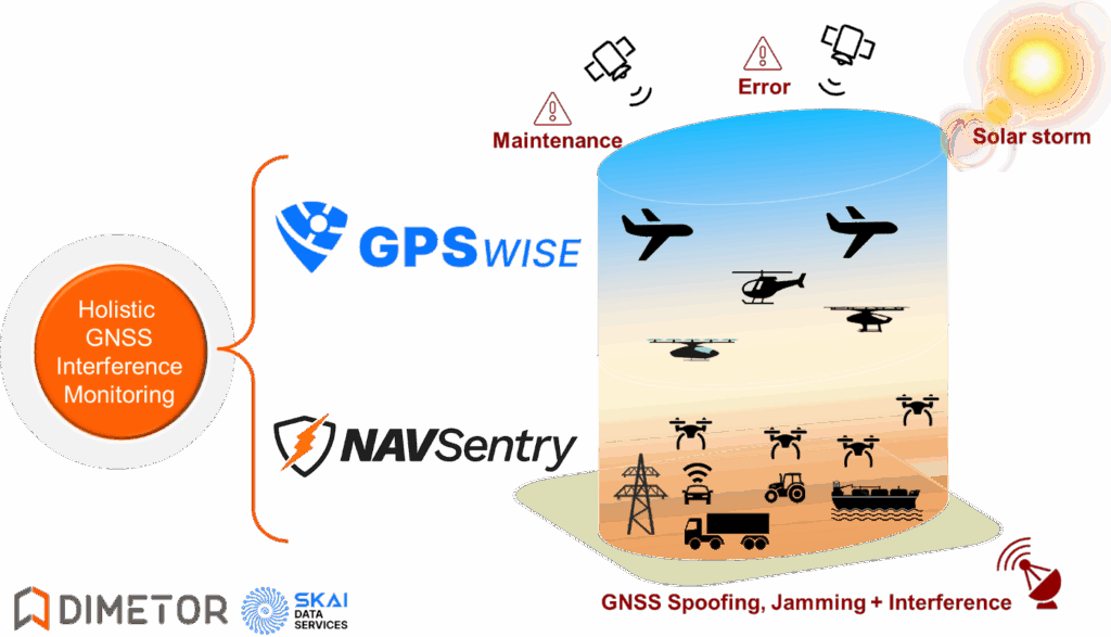 “This partnership with SkAI Data Services and GPSwise allows us to close the gap between lower and upper airspace monitoring,” said Thomas Neubauer, CEO and co-founder of Dimetor. “For the first time, we can offer our NAVSentry customers a truly holistic, real-time picture of GNSS integrity, giving aviation, UTM, and critical infrastructure operators the tools they need to stay ahead of threats.”